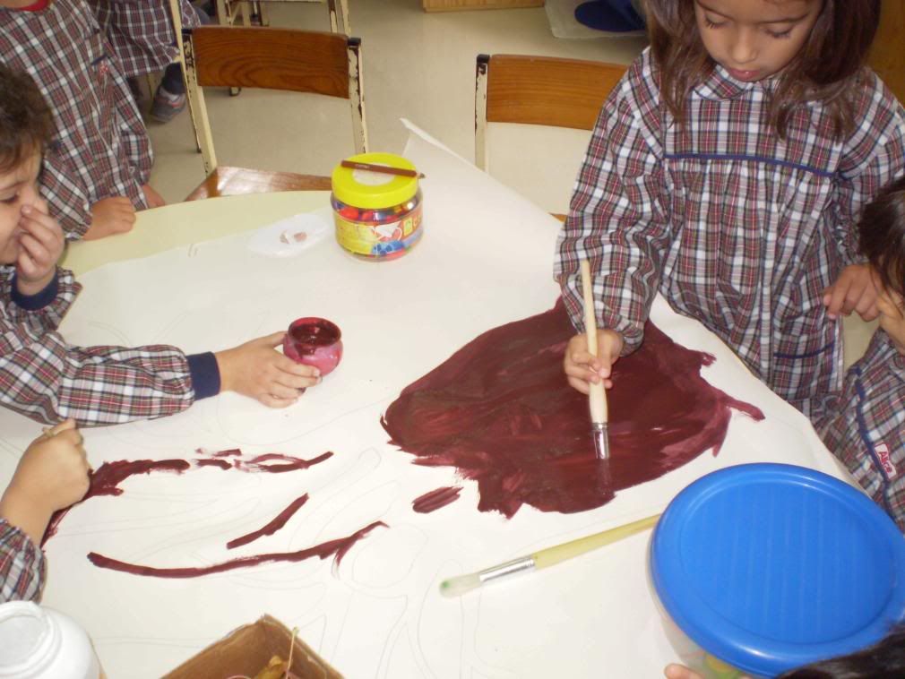 Através da realização de várias actividades há já algumas crianças de quatro anos que conseguem escrever o nome e outras estão quase a conseguir.