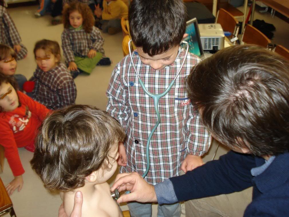 Tinhamos combinado com o nosso Pediatra, trazer o estetoscópio para as crianças ouvirem o coraçãozinho a bater.