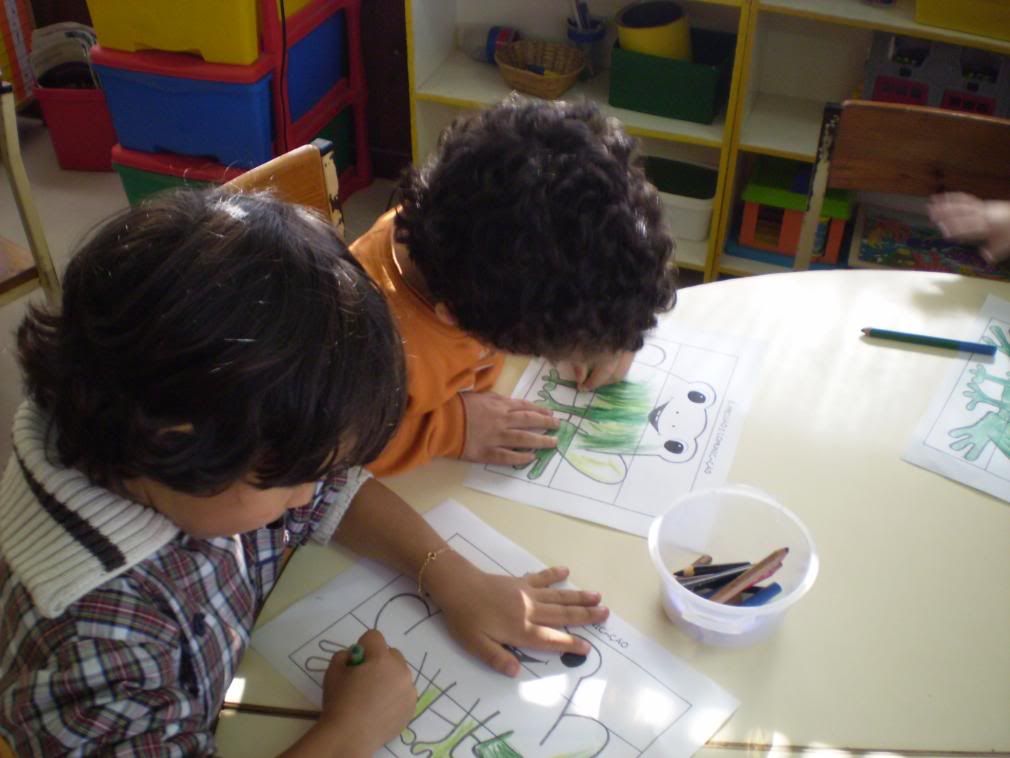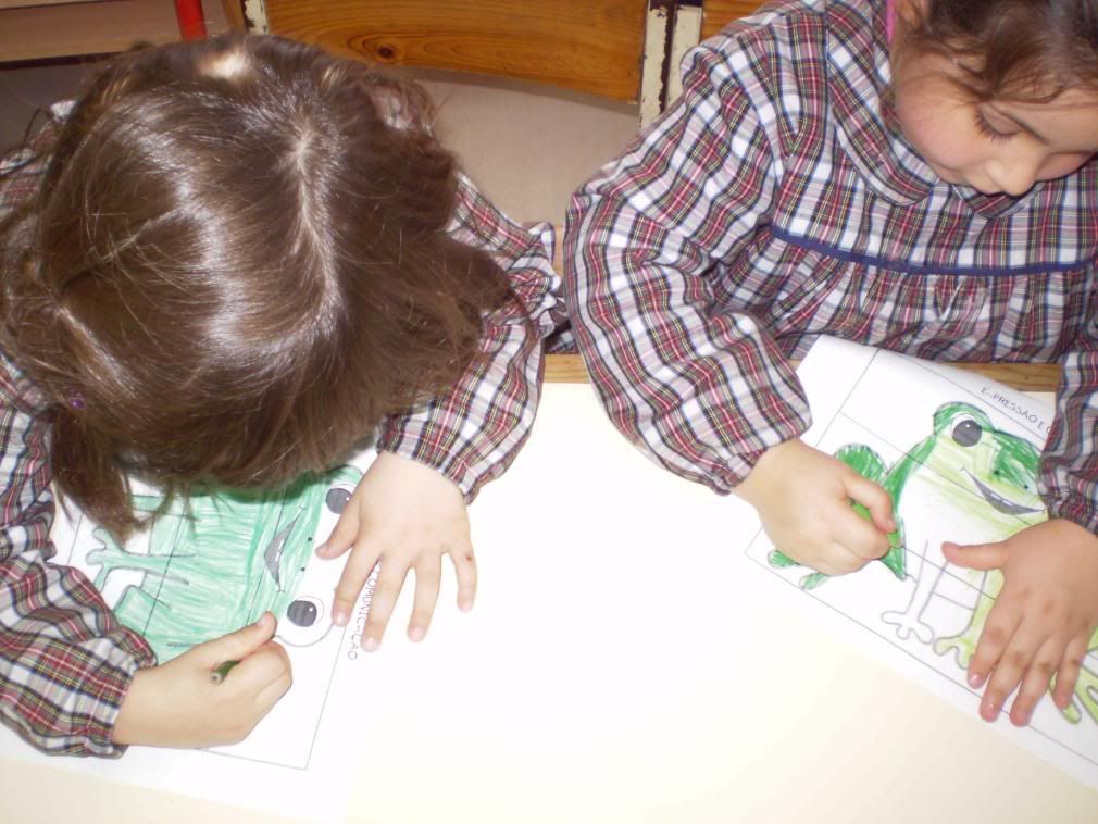 Depois foi a vez de passar para o papel o que ouviram pois os pais e as mães, que não conhecem a história e assim podem ficar a saber por quem o sapo se apaixonara.