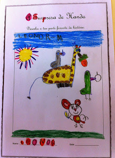 Hoje fomos à biblioteca da nossa EB para ouvir mais uma história contada pela educadora Céu. Desta vez foi "A Surpresa de Handa"