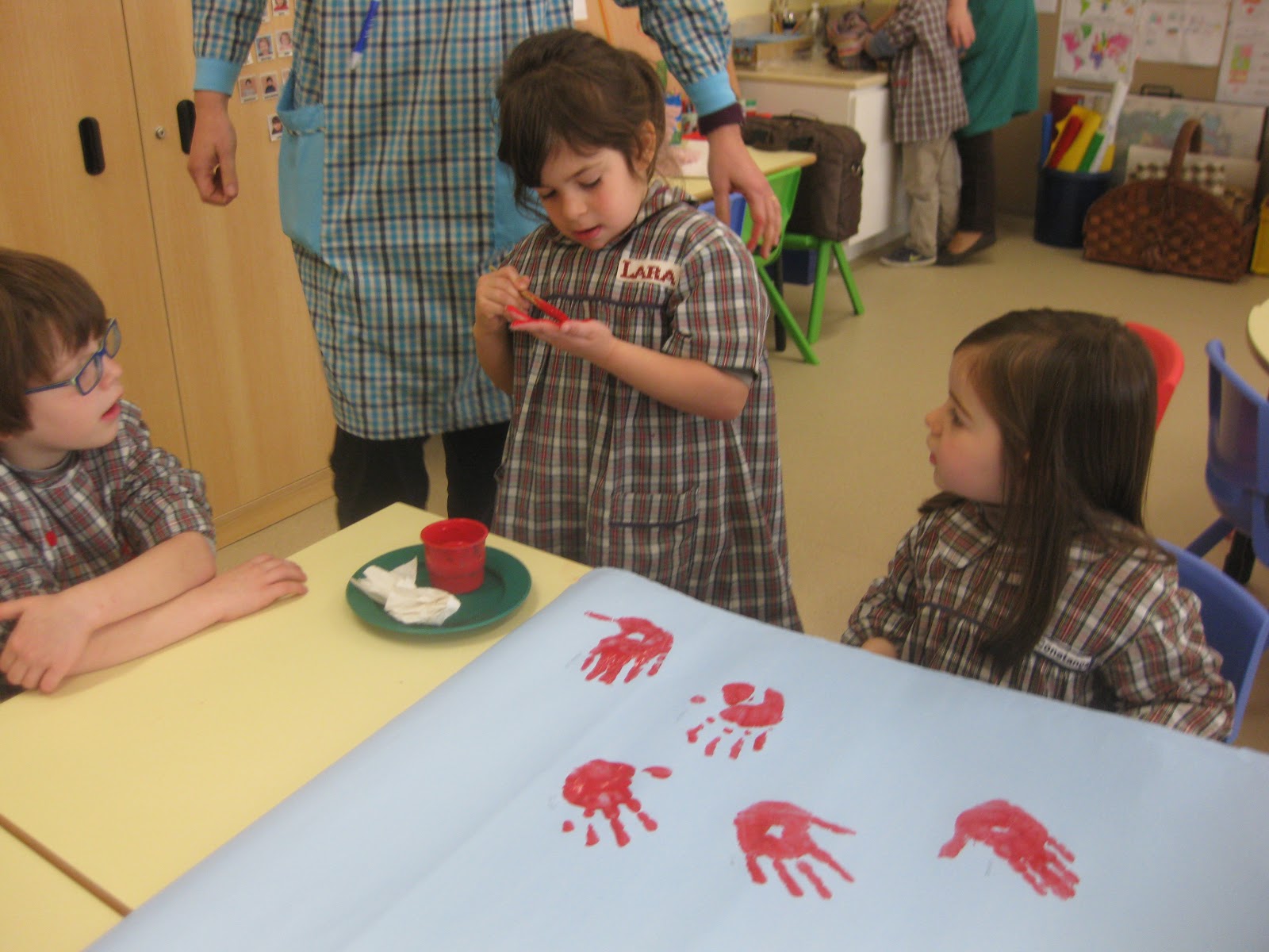 Para escrever o nome dos meninos mais pequenos que ainda não sabem escrever, contamos com a solidariedade dos amigos mais velhos...